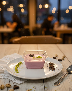 Yoğun kakao ve çikolata tutkunları için. Kasesinin dibinde süte batırılmış kek parçaları, üzerinde ipeksi çikolatalı muhallebi ve fıstık süslemesiyle çocukluğun en tatlı hatırası.